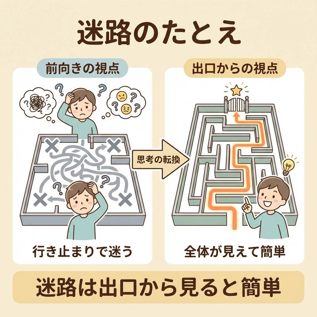 逆算思考を理解するために、「迷路」をイメージしてください。