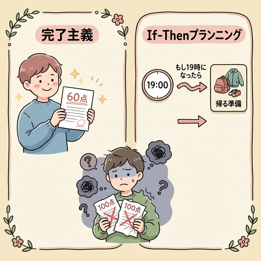 そこで使いたいのが「If-Then プランニング」。あらかじめ「もし〇〇になったら、△△する」とルールを決めておくことで、その場の判断を減らすテクニックです。