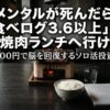 知らない駅に降り立ち、まずは景気づけ。3,000円前後の良い肉をランチで喰らいます。夜ではなく昼に行くことで、コスパ良く脳内物質をドバドバ出し、幸福感をチャージします。