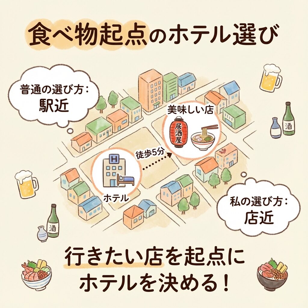 🍽️ 食べ物を起点にホテルを決める