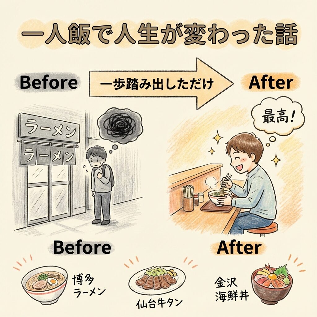 私自身、一人飯ができるようになってから、人生の充実度が格段に上がりました。