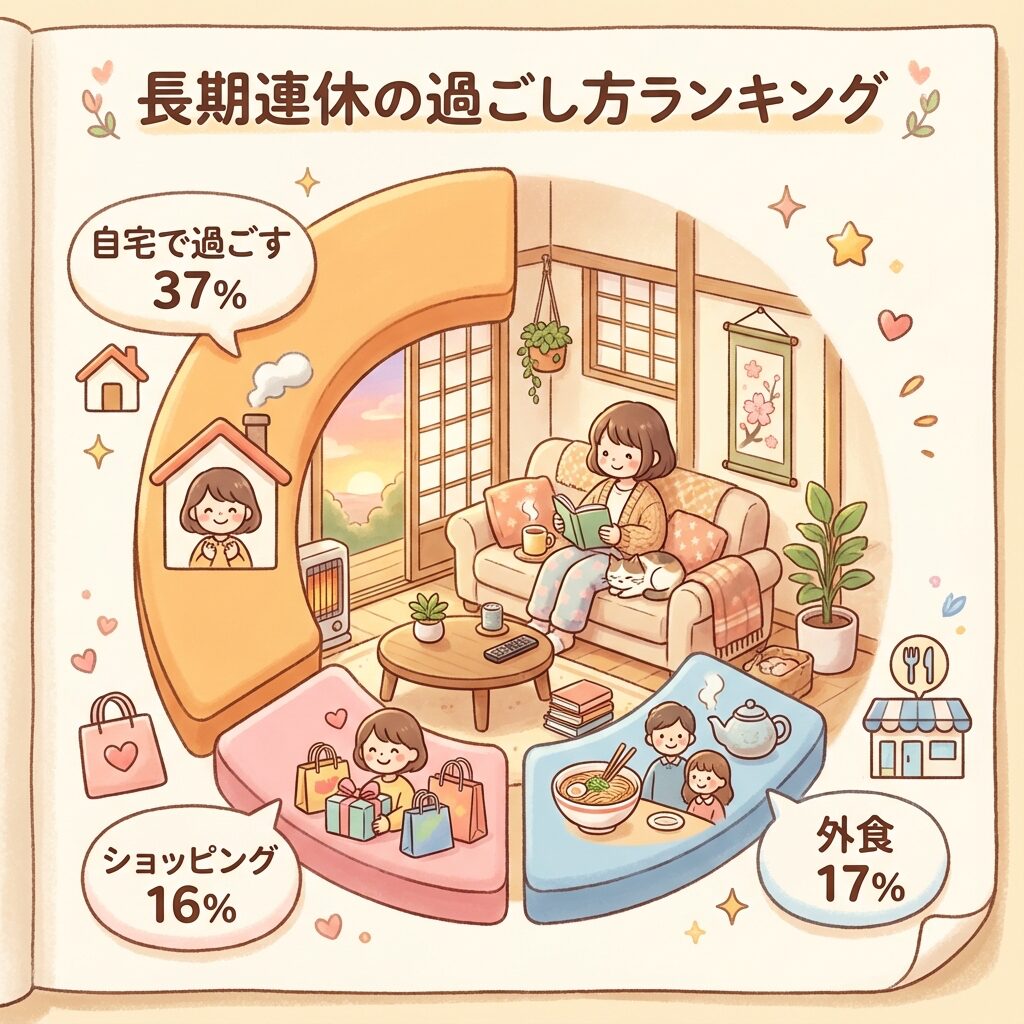 - 長期連休の過ごし方1位は「何もしない・自宅でゆっくり」(37〜45%)