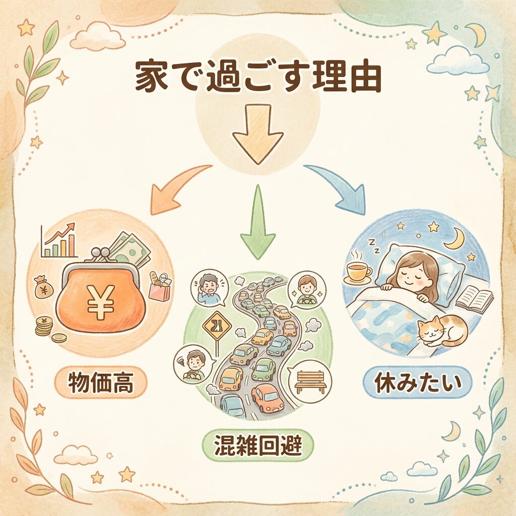 - 物価高・混雑回避・疲労回復の3つが「出かけない」理由