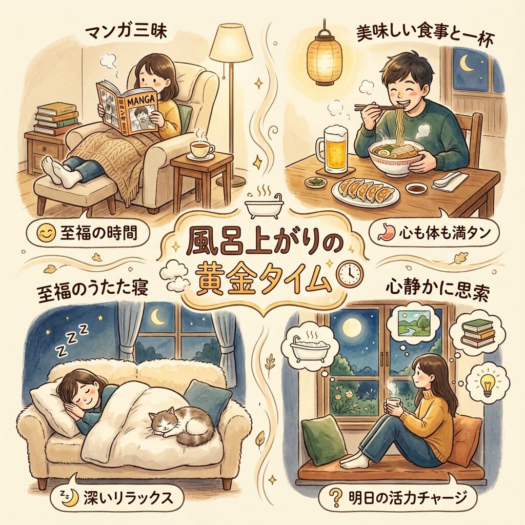 • 風呂上がりの漫画・食事・昼寝も最高の時間