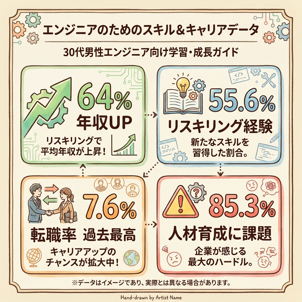 まずは「30代が今どんな市場環境にいるのか」をデータで押さえます。ここを理解しないまま学習を始めるのは、マーケティングなしで製品を開発するのと同じです。