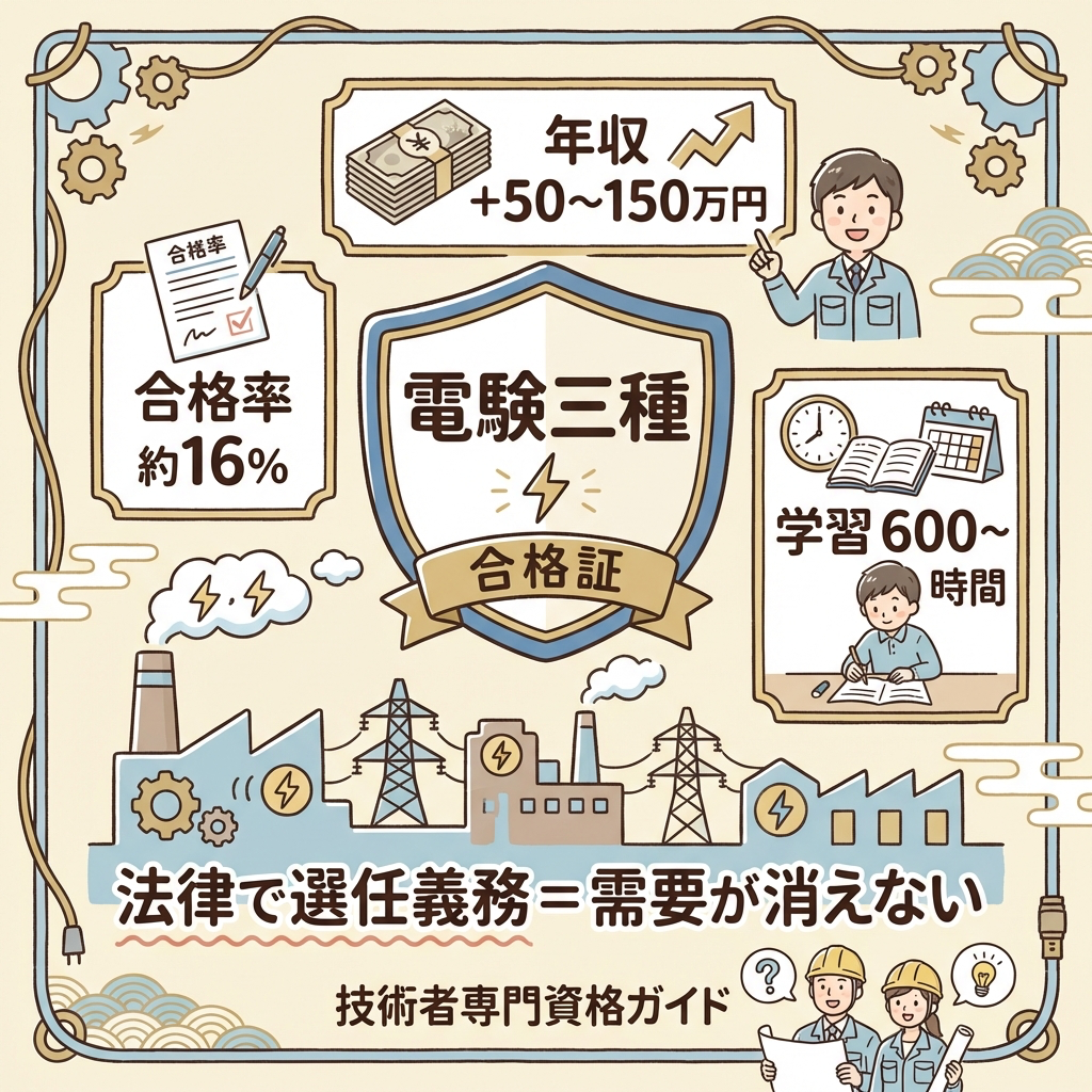 📘 「電験三種で人生変わる」は本当か?30代で取得した私が年収・転職・キャリアの変化をデータで証明する →