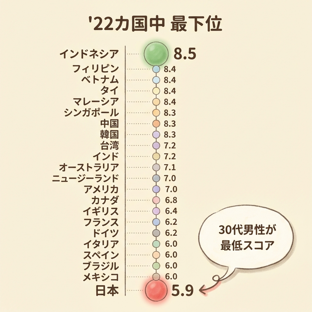 📊 4つの調査が示す「日本の30代男性=世界最下位」の根拠