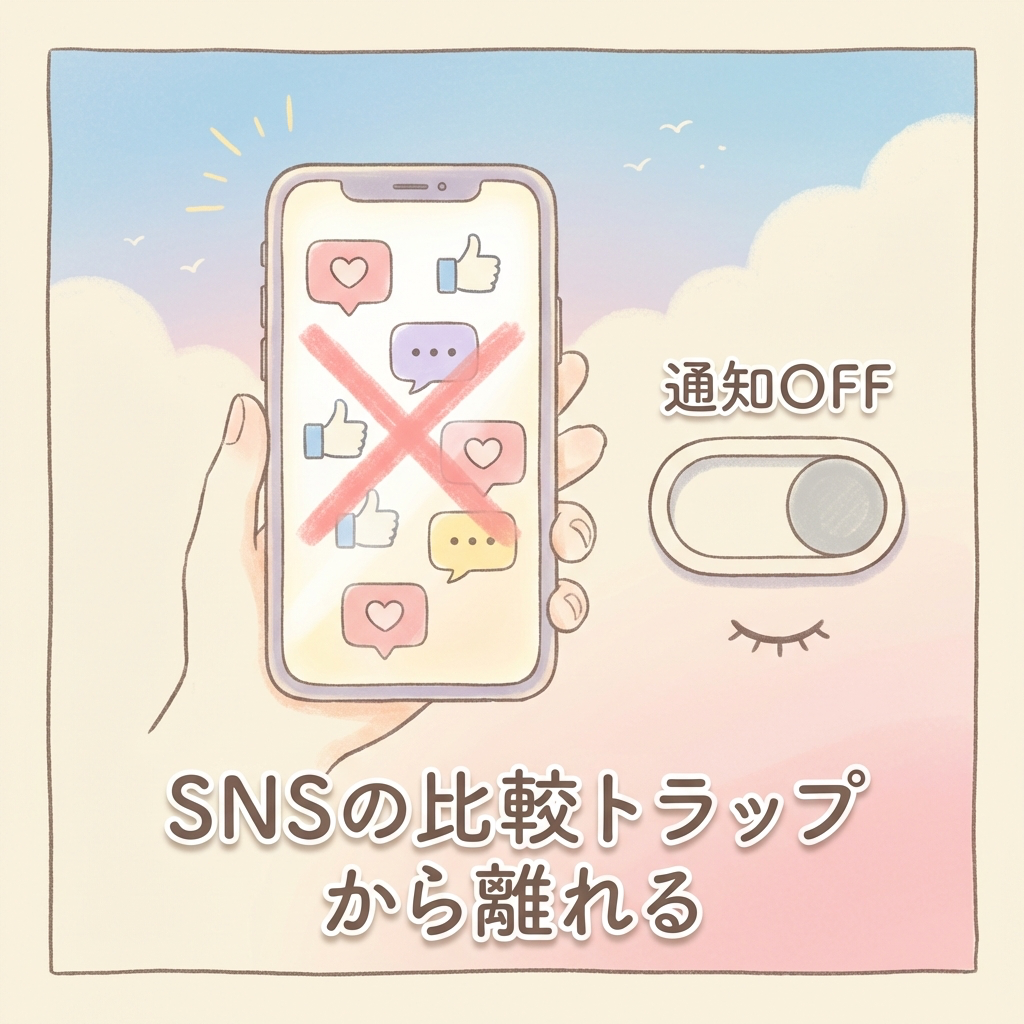SNS通知をすべてオフにする。「見たくて見る」に変えるだけで、受動的な比較が激減します。