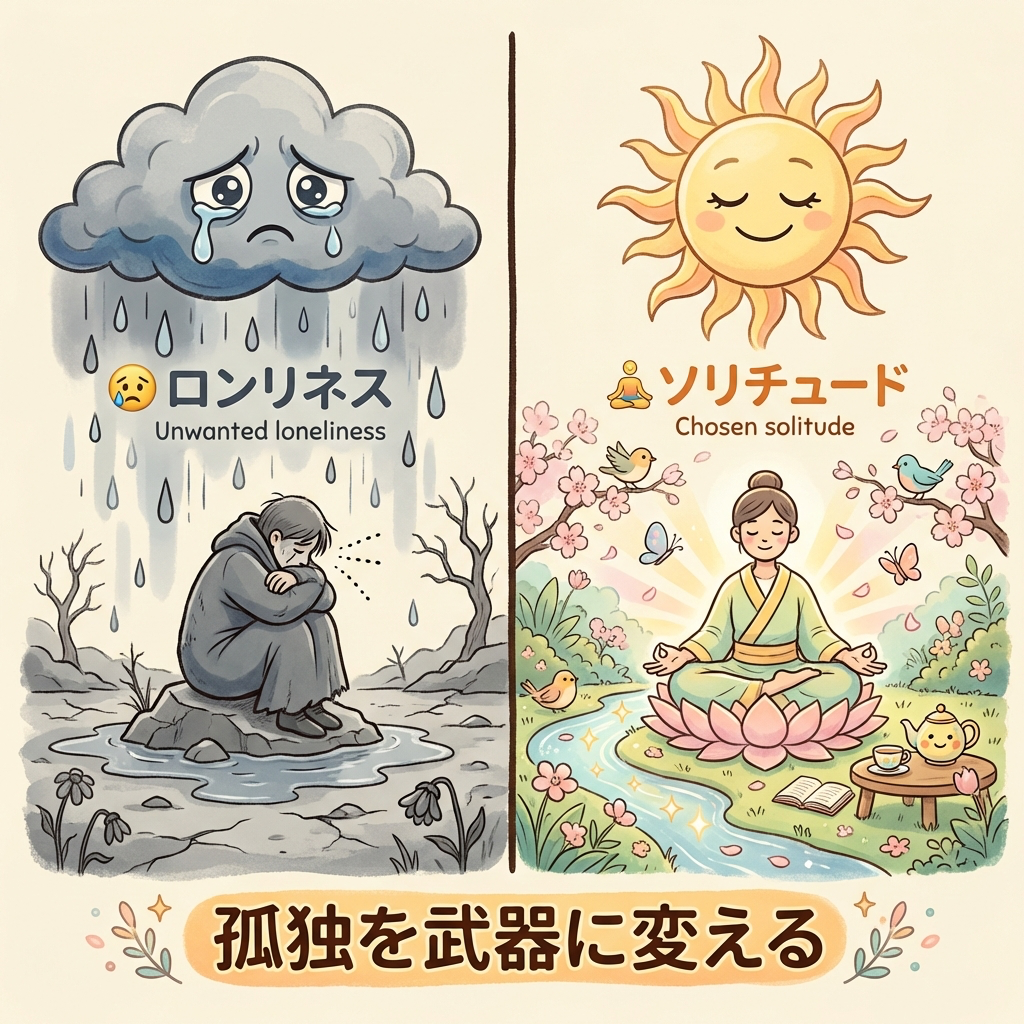 本記事の「幸福度」視点を「孤独」の切り口で深掘り。ロンリネスとソリチュードの違いから、孤独を武器に変える具体策を解説しています。