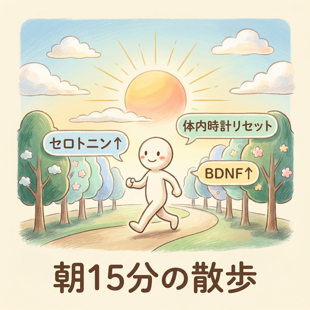 セロトニン・体内時計・BDNFのメカニズムから、雨の日の代替案まで完全網羅しています。