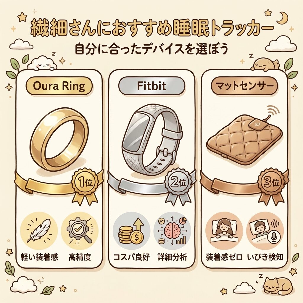 最後に、繊細な人に特におすすめの睡眠トラッカーを3つ厳選してご紹介します。