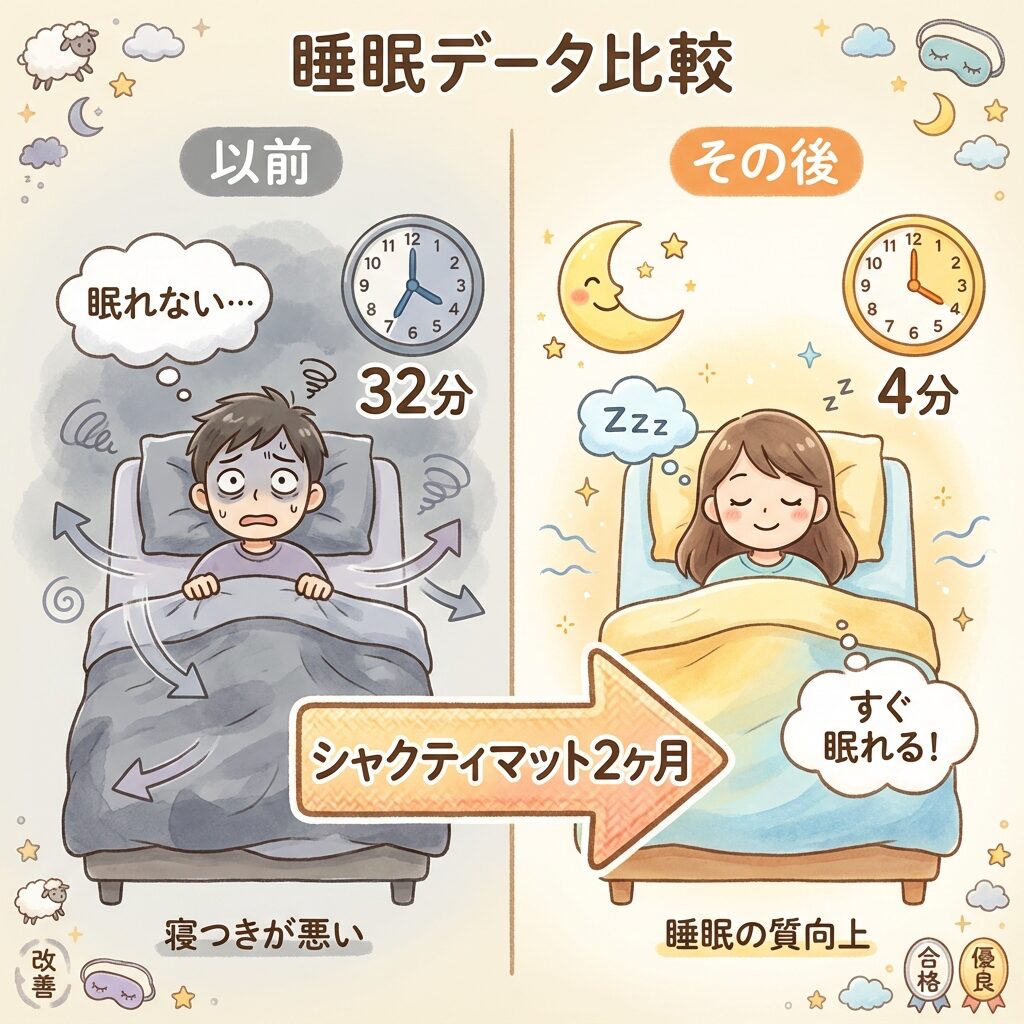 | 入眠時間 | 32分 | 4分 | −28分 ✨ |