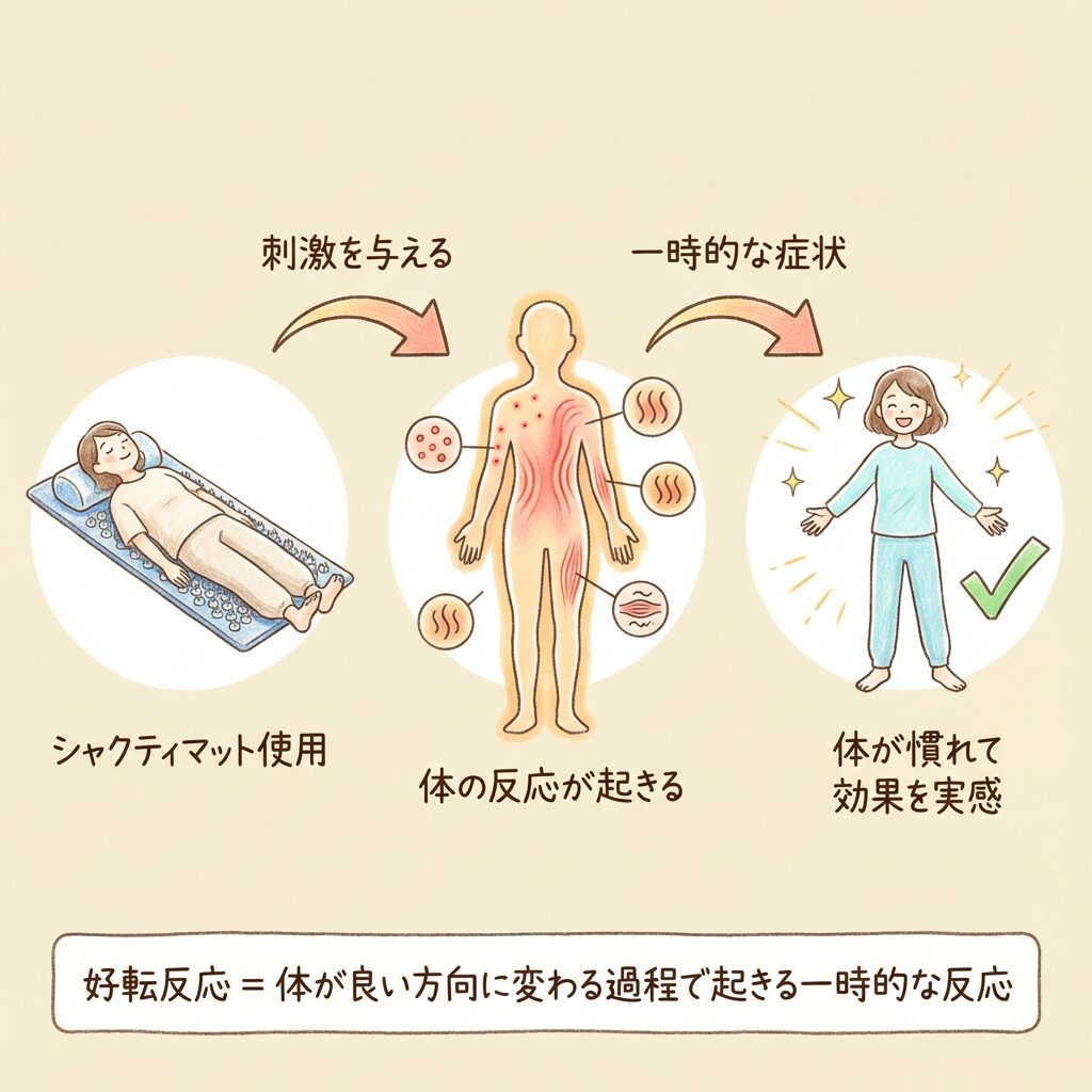 シャクティマット使用後の反応を「好転反応」と呼ぶかどうかは別として、