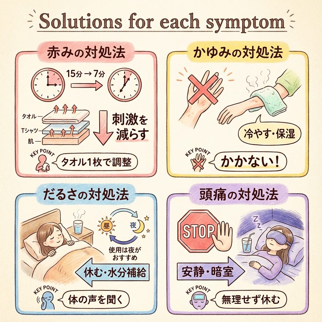 シャクティマット使用後の「赤み」「かゆみ」「だるさ」は、ほとんどの場合正常な反応です。