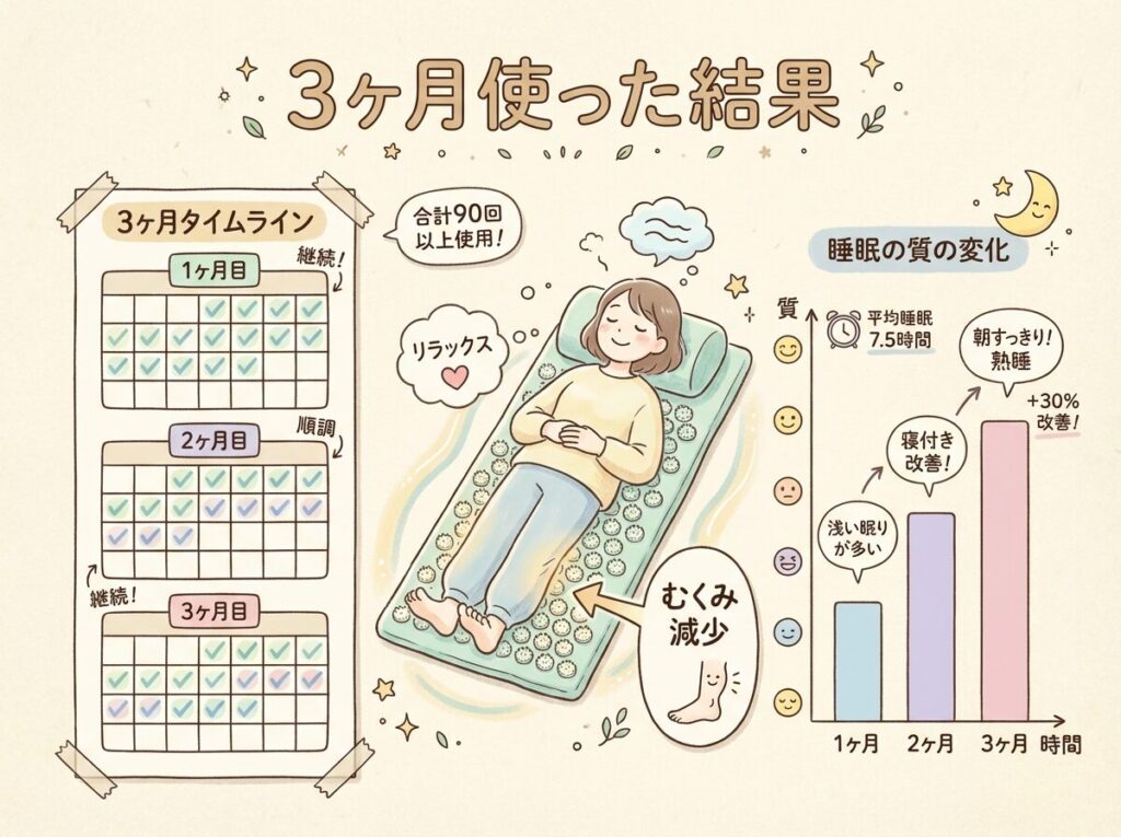 ここからは、私がシャクティマットを3ヶ月間毎日使い続けて感じた、リアルな変化をお伝えします。