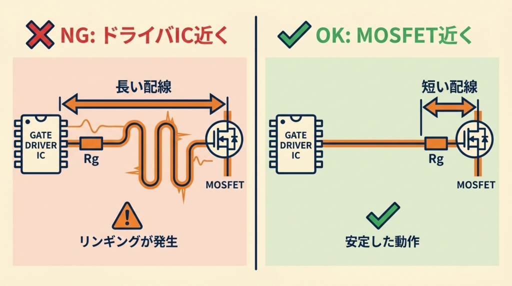 ⚡ 対策②:ゲート抵抗の正しい配置場所