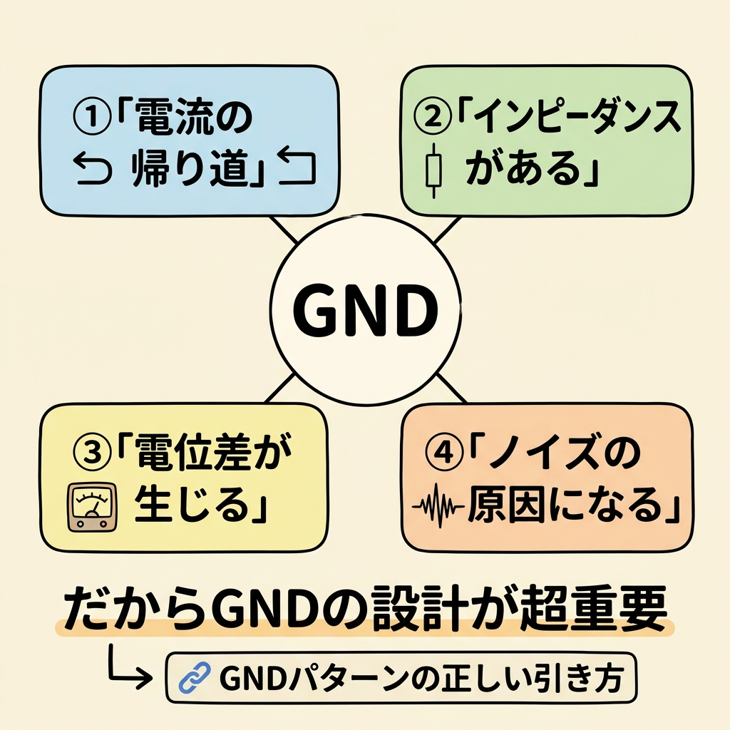 ここまでの知識があれば、「パワーGNDと信号GNDを分けるべき理由」がスッと理解できます。