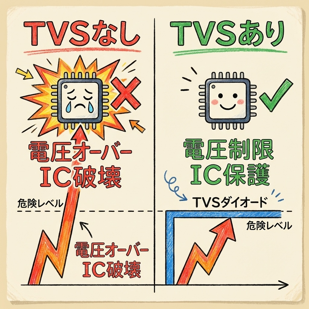 TVSダイオード:外から侵入してくる脅威(泥棒・雷)を防ぐ「外部対策」