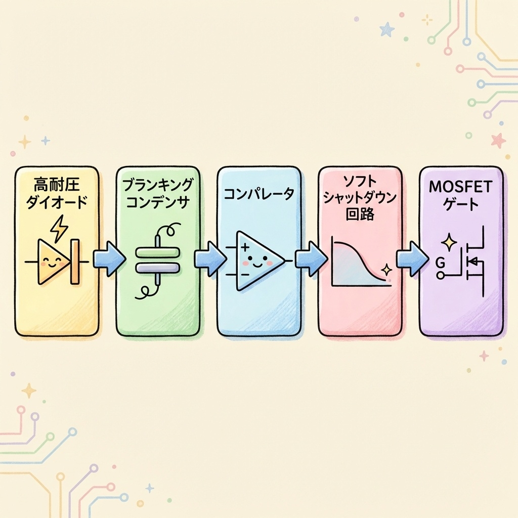 ブランキングコンデンサ:ターンON直後の「正常なVDS上昇」を無視するための時定数を作る。誤検出防止の要。