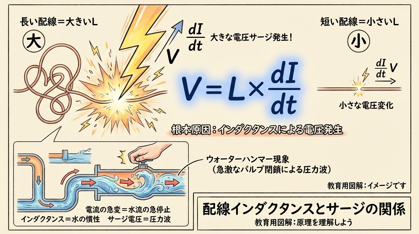 L:配線インダクタンス、dI/dt:電流の変化速度