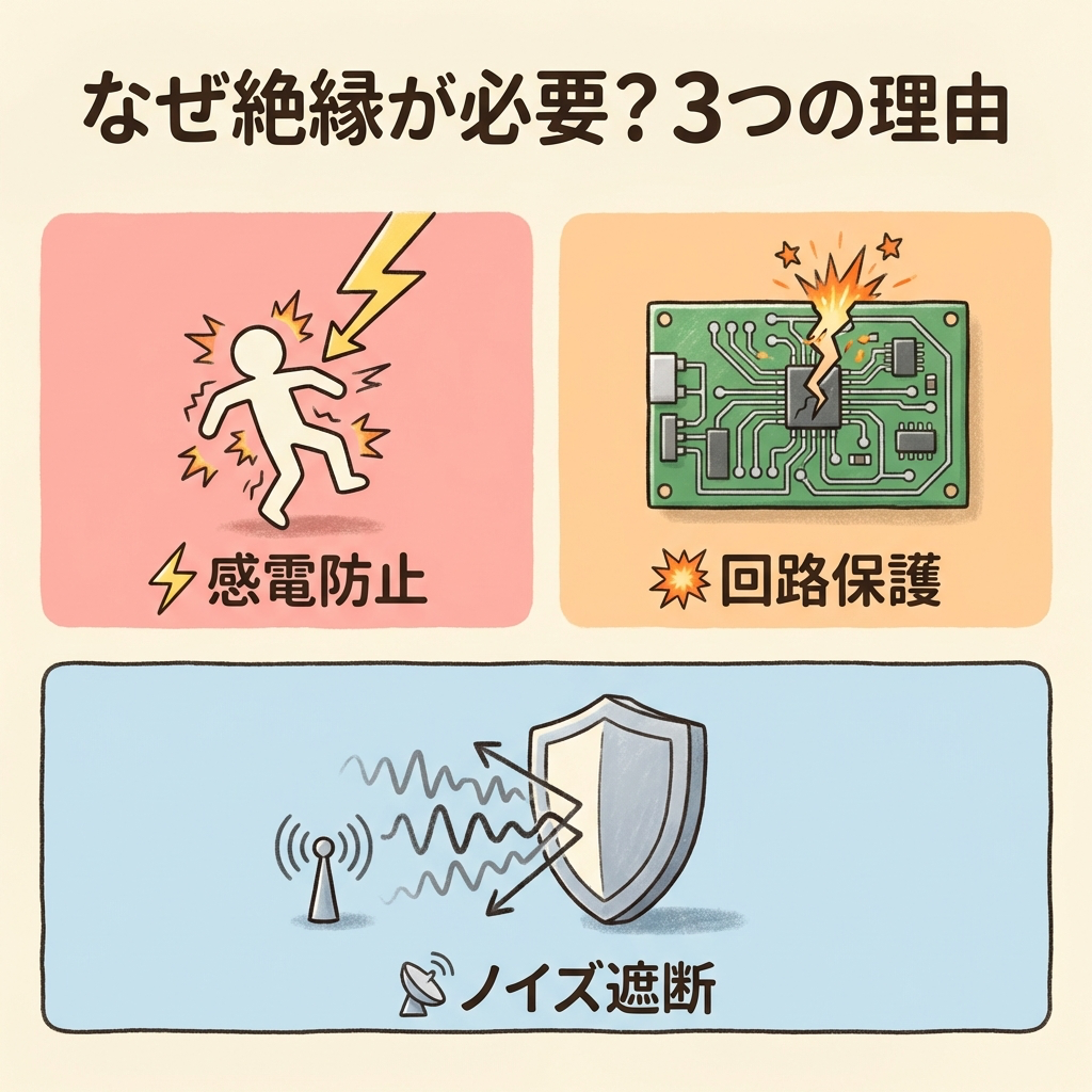 💡 絶縁とは「電気の通り道を物理的に断ち切る」こと