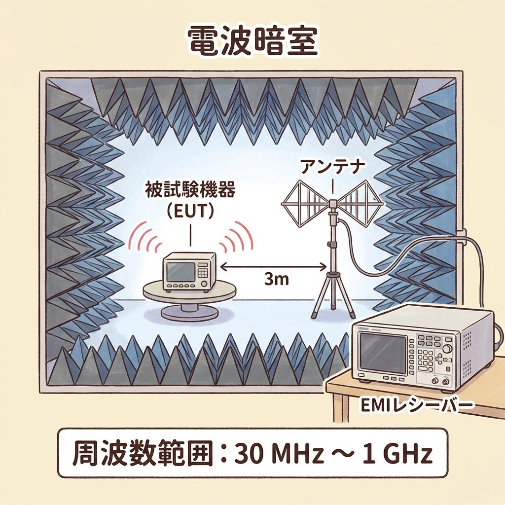 🔬 放射ノイズの測定方法|電波暗室とアンテナ