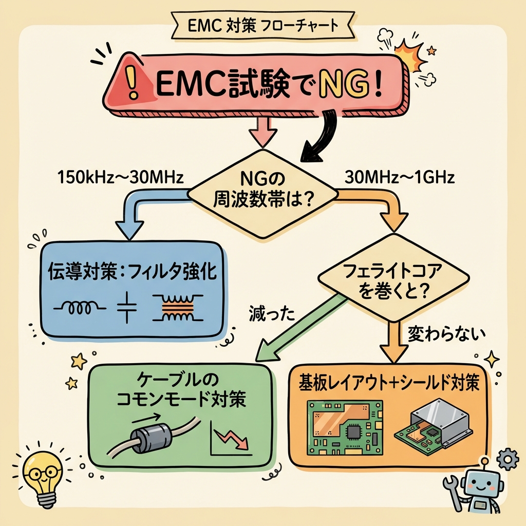 🗺️ EMC試験でNGが出たときの対策フロー