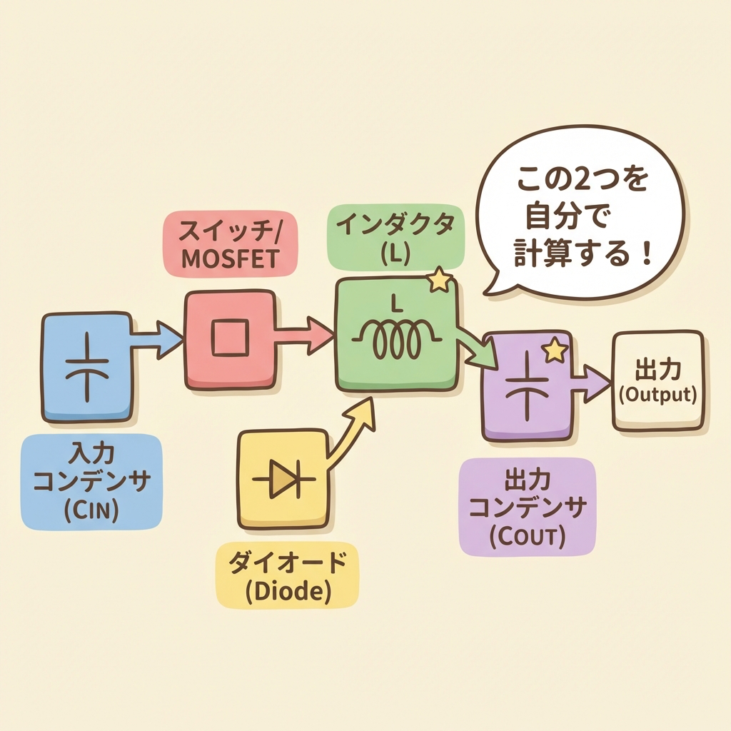 | ⭐ インダクタ(L) | エネルギーを貯めて、出力に渡す | ★ 自分で決める |