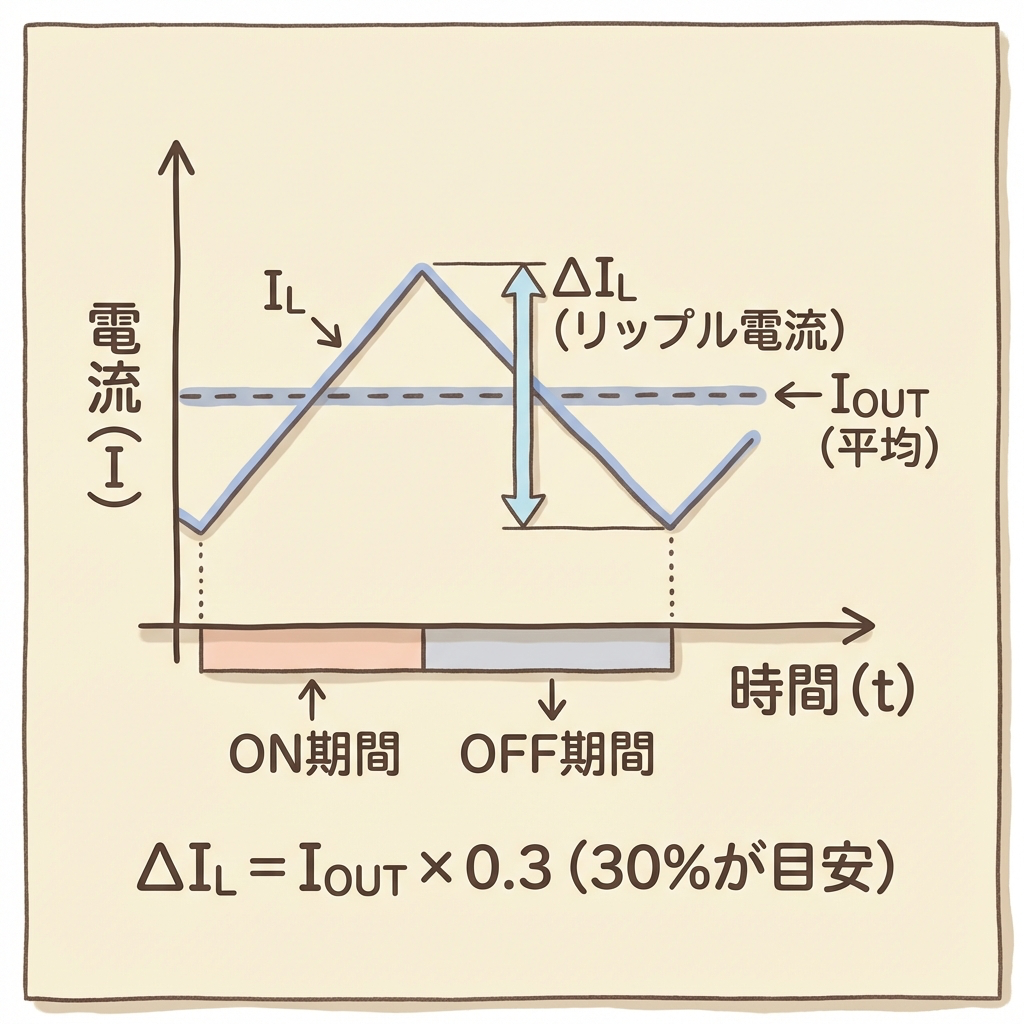 リップル電流 ΔIL を決める ── ΔIL = IOUT × 0.3(迷ったら30%)