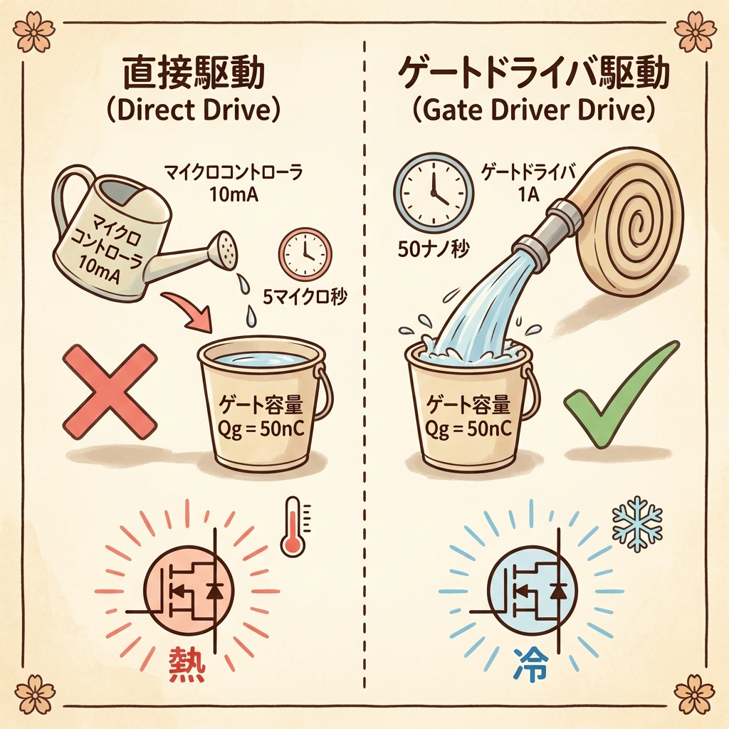 - 「MOSFETのゲートに信号入れるだけでしょ?なんで"駆動回路"がいるの?」