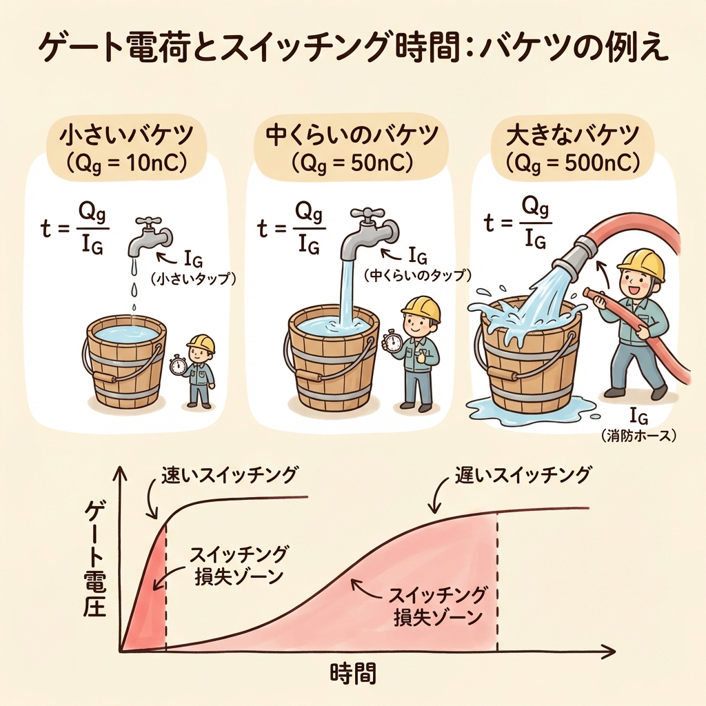 ゲート電荷(Qg)を理解する──「水をバケツに注ぐスピード」の問題