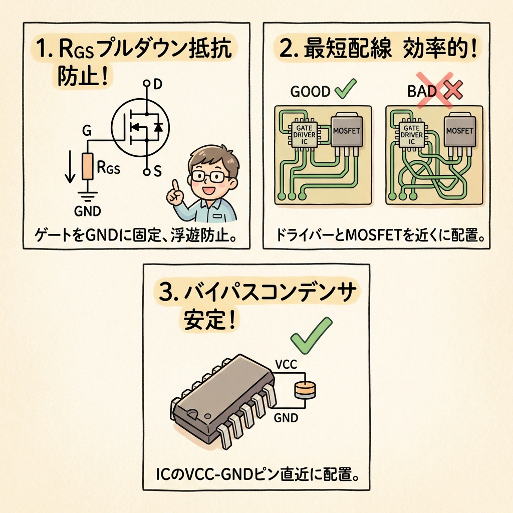 まとめ:ゲート駆動回路は「MOSFETを生かすも殺すもする裏方」
