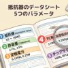 種類(厚膜 or 薄膜 or 金属板)が決まったら、具体的な製品をデータシートから選定します。このとき確認すべき5つのパラメータを一覧にしました。各パラメータの詳細は、次の記事で計算例付きで解説しています。