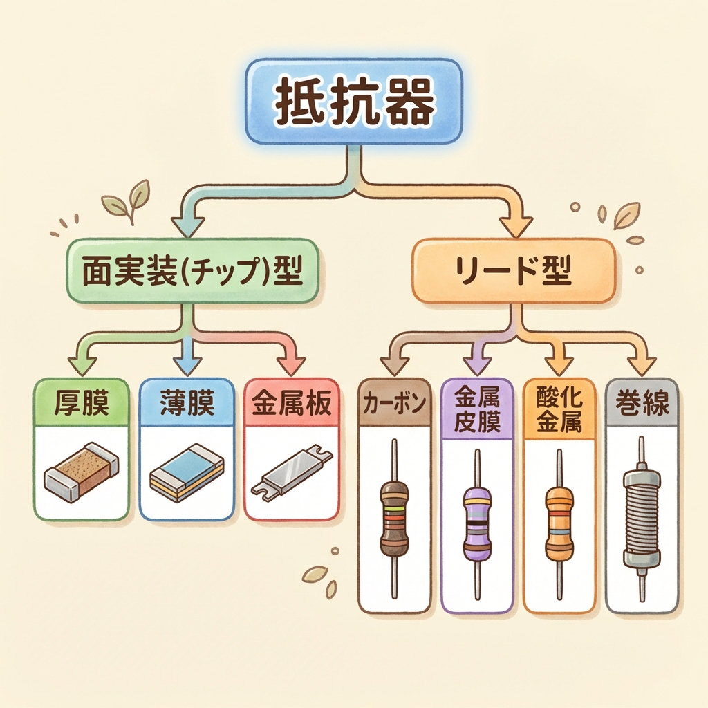 • 抵抗器の全体像 ── 7種類を「ファミリーツリー」で一発整理