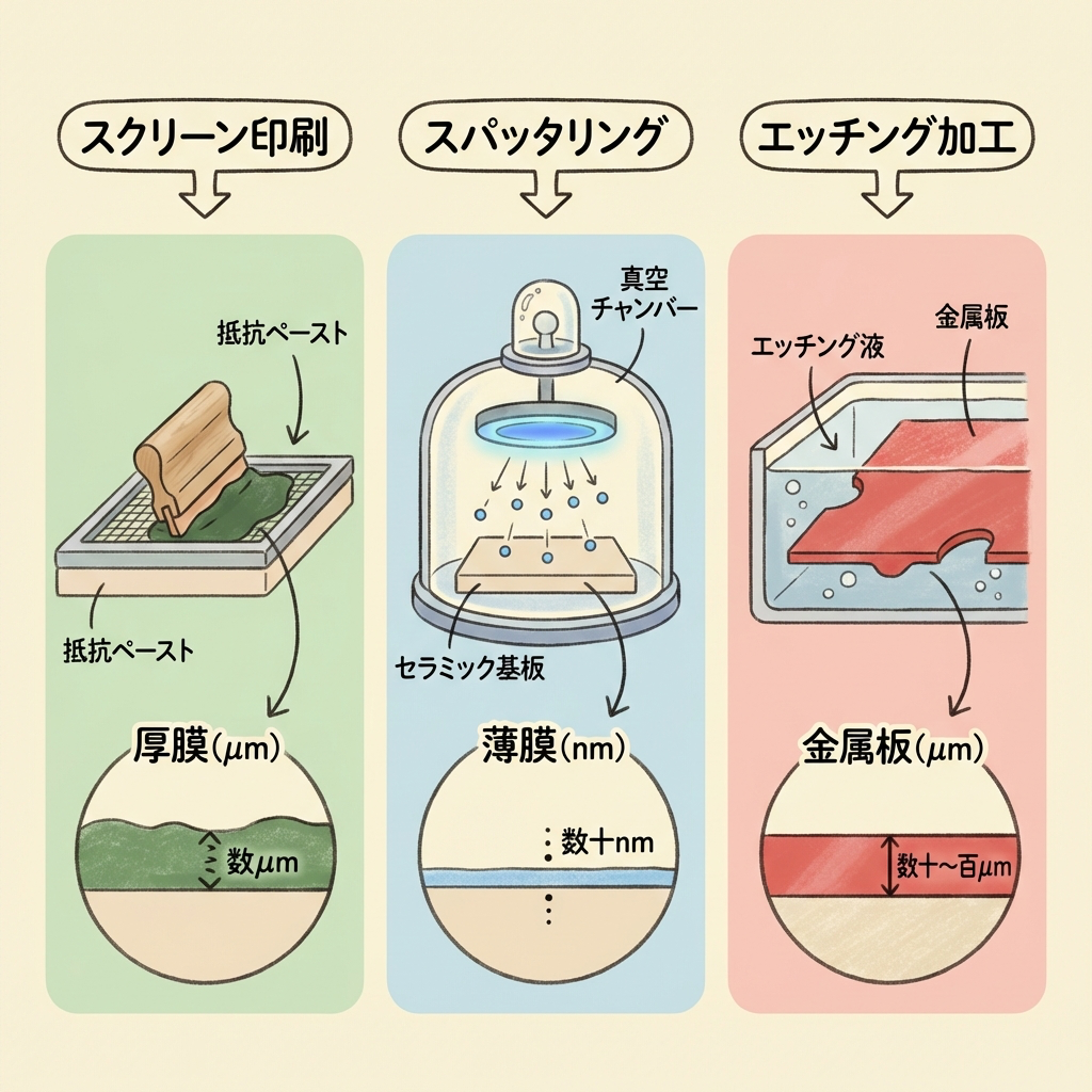 • 厚膜・薄膜・金属板の決定的な違いを「製造方法」と「性能」の2軸で理解