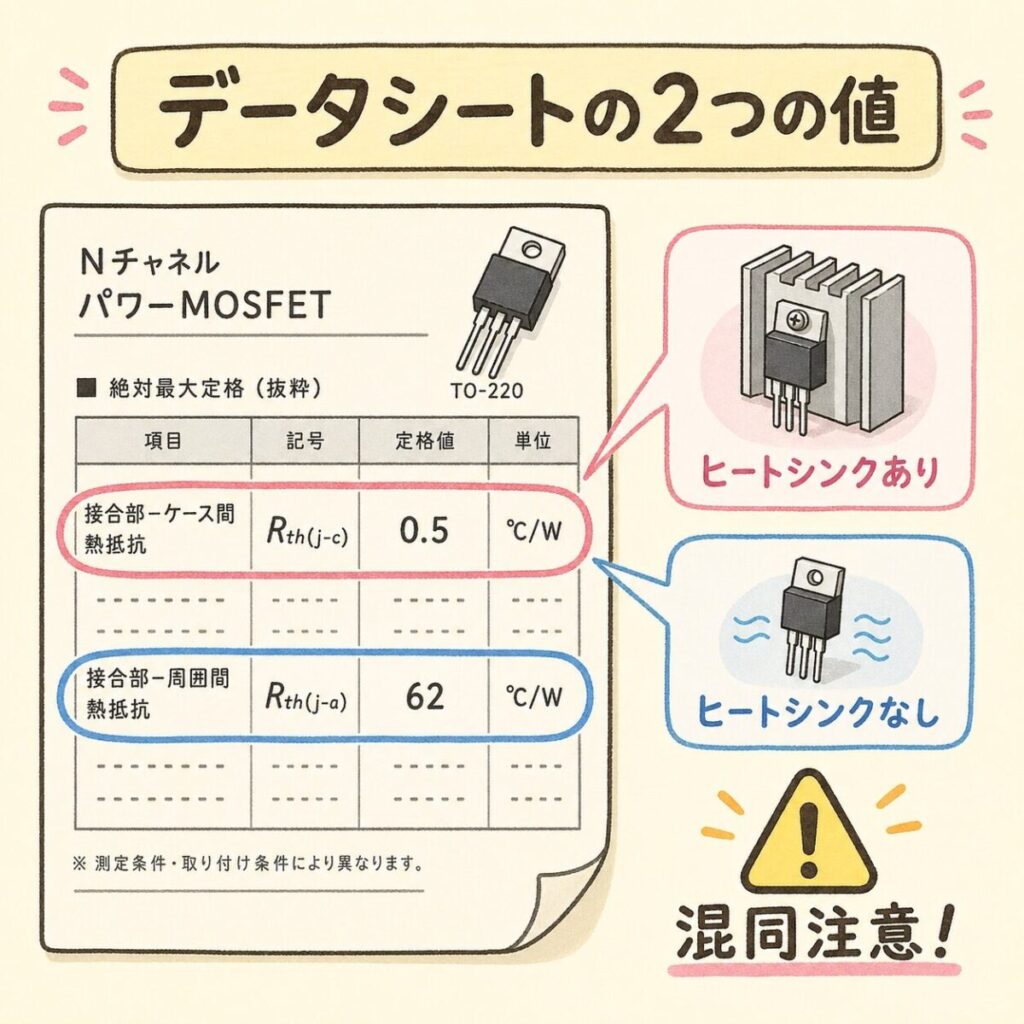 データシートでの熱抵抗の見方|2つの値に注意