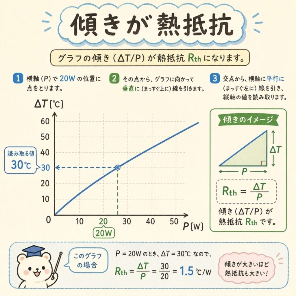 グラフから熱抵抗を読み取る方法