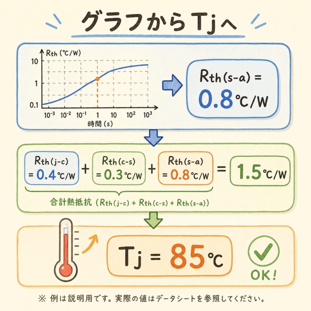 グラフから読み取ったRth(s-a)を、他の熱抵抗とどう組み合わせるかを解説。