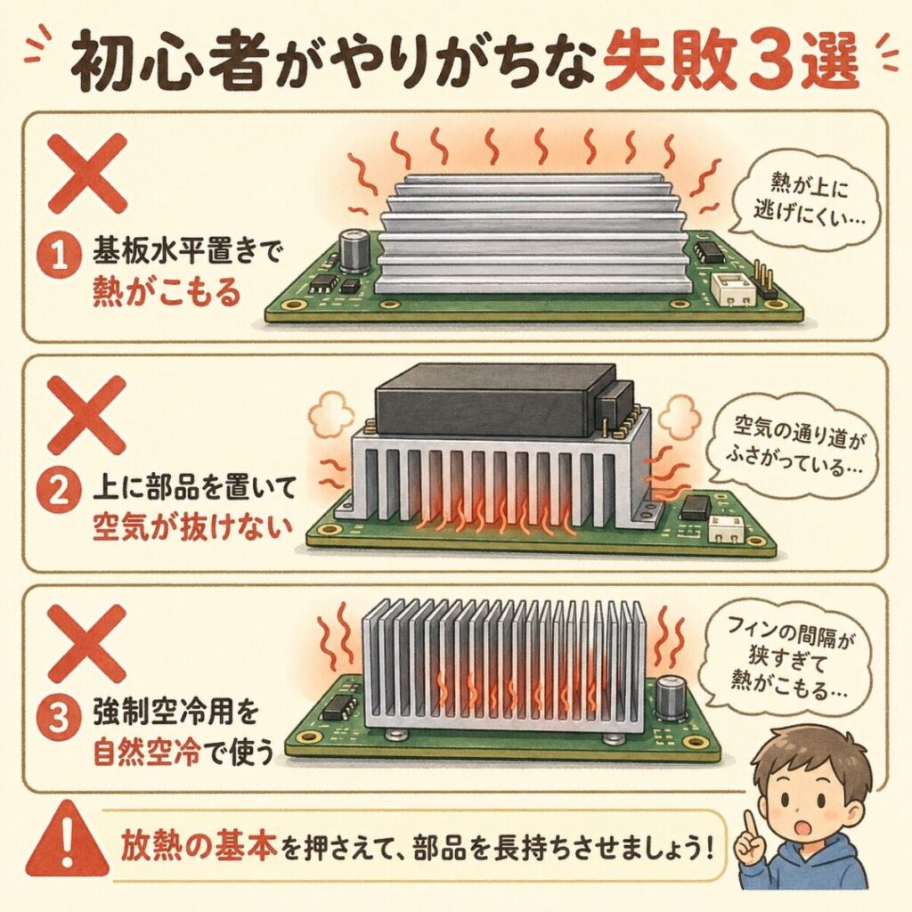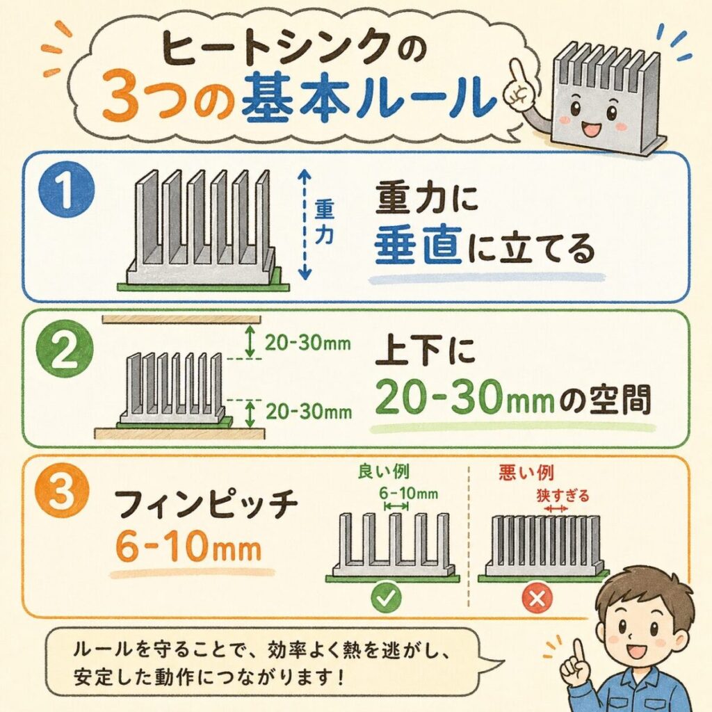 ヒートシンクの「向き」と一口に言っても、判断基準は1つではありません。実装時に必ず確認すべき3つのルールを紹介します。