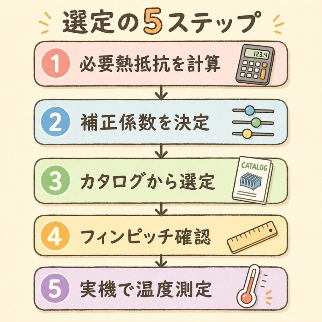 ここまでの内容を踏まえて、自然空冷ヒートシンクを選ぶ実務手順をまとめます。