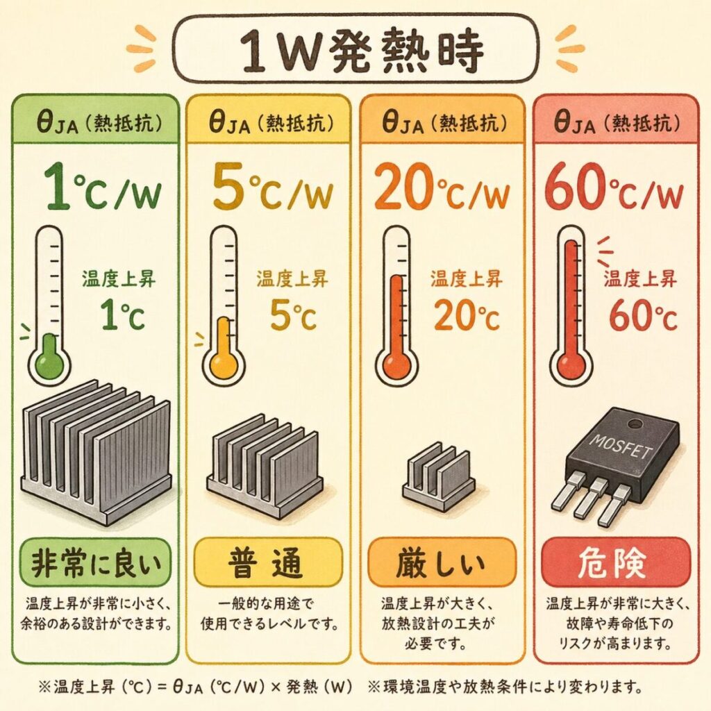 データシートでよく見る2種類の熱抵抗。桁違いの差があるので注意してください。