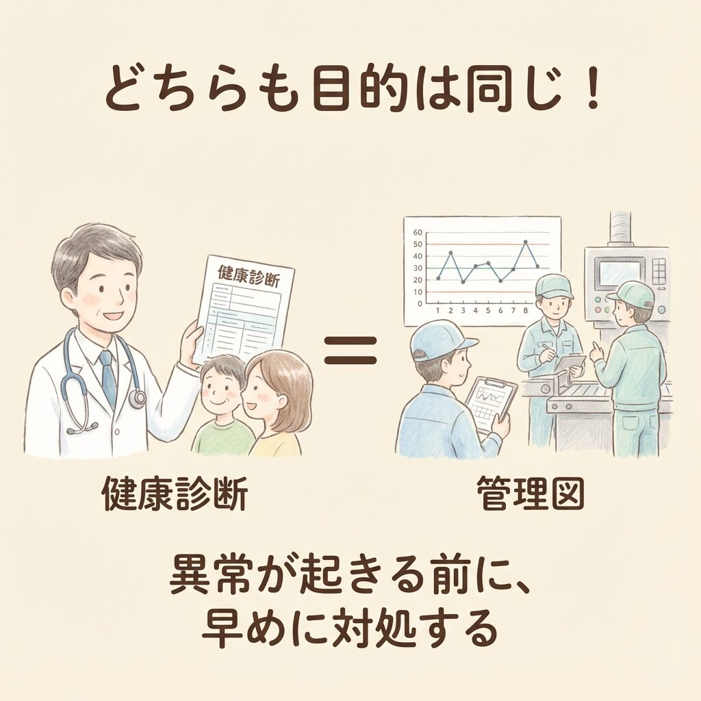 この記事では、「病院の健康診断」という身近な例を使って、管理図の活用法をイメージで理解していきましょう!