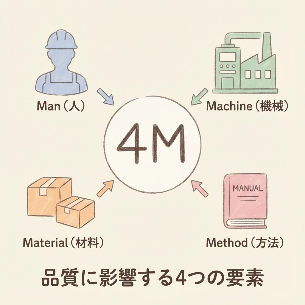 最近は、4MにEnvironment(環境)を加えた「4M1E」もよく使われます。
