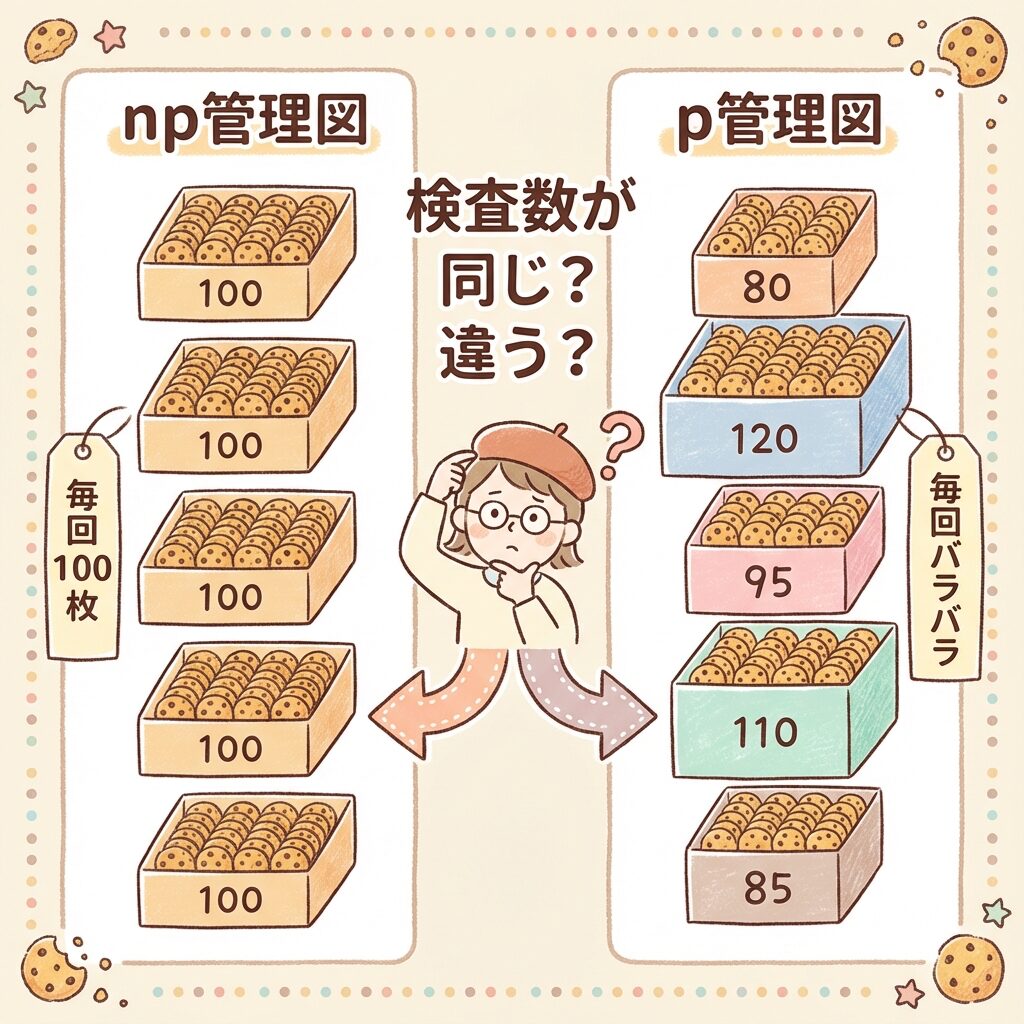 大丈夫です。この記事では、クッキー工場の不良品検査を例に、2つの管理図の違いと計算方法をわかりやすく解説します!