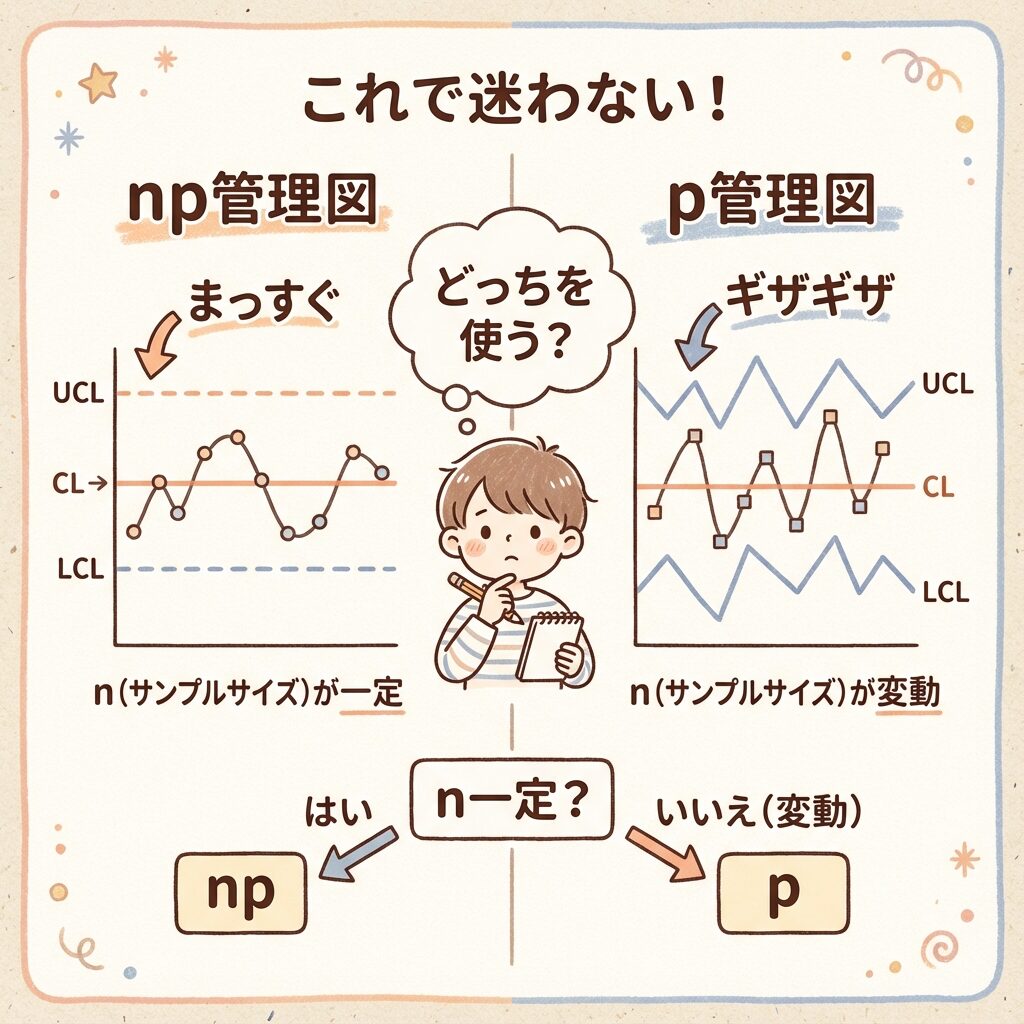 ✅ 共通点:p̄(平均不適合品率)を先に求める