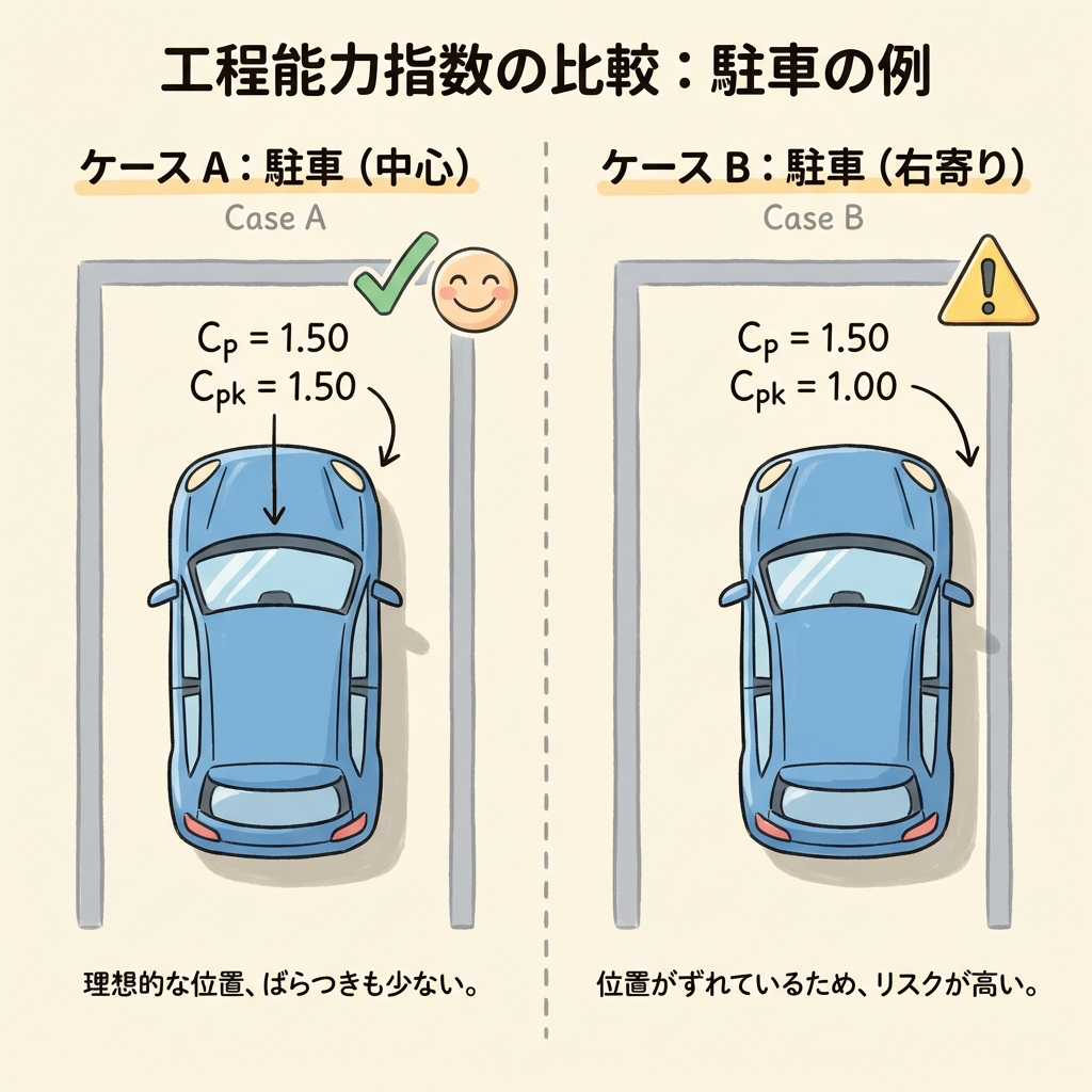 Cp と Cpk の違い ── 「駐車場に車を停める」たとえで理解する