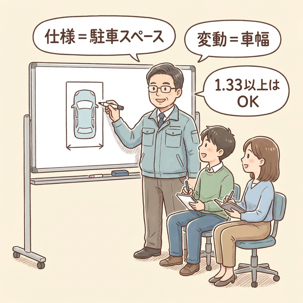 • 工程能力指数を「駐車場に車を停めるたとえ」で直感的に理解できる