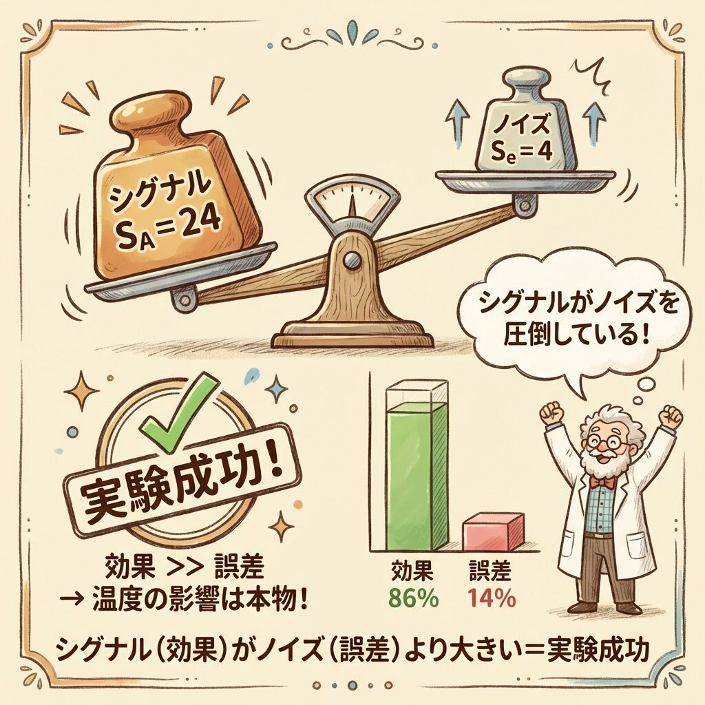 この比率を見ただけでも、直感的に「あ、これは温度の影響がめちゃくちゃ強いな(実験成功だな)」と感じませんか?