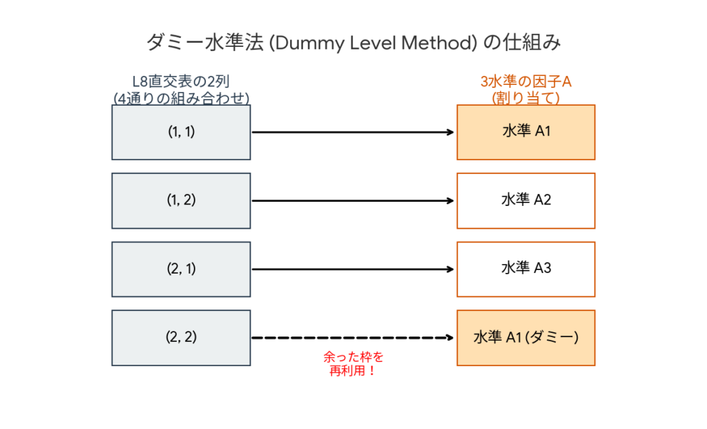 「でも、手元のL8直交表は『2水準』専用だ…」