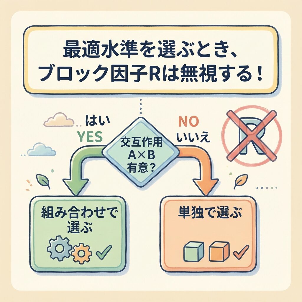 【ルール1】ブロック因子Rは最適水準の選択に使わない